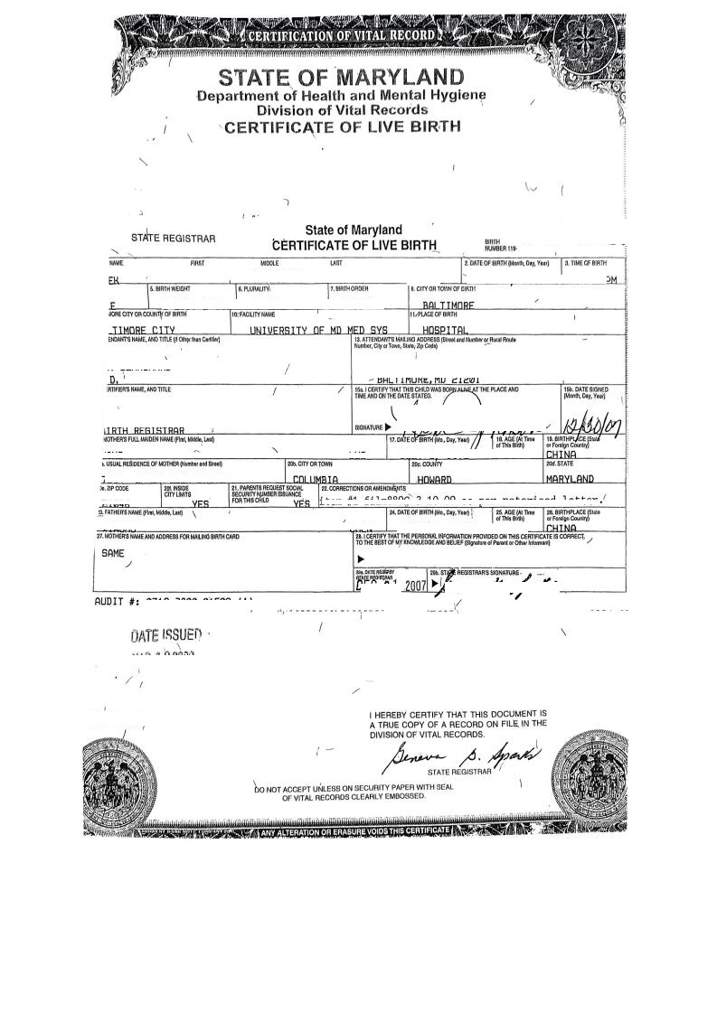 美国马里兰州出生纸三级认证海牙认证apostille
